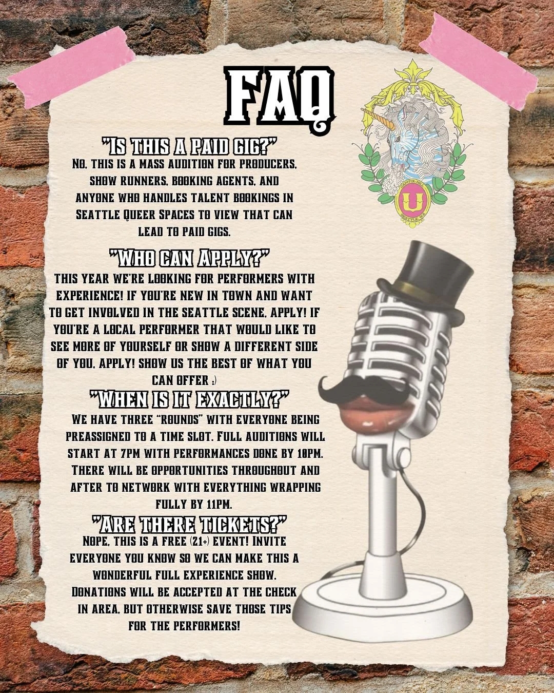 Are you a performer? Are you new to town? Looking to get more involved in the Seattle Nightlife Scene? Or build connection's and get more bookings? These auditions are for you!