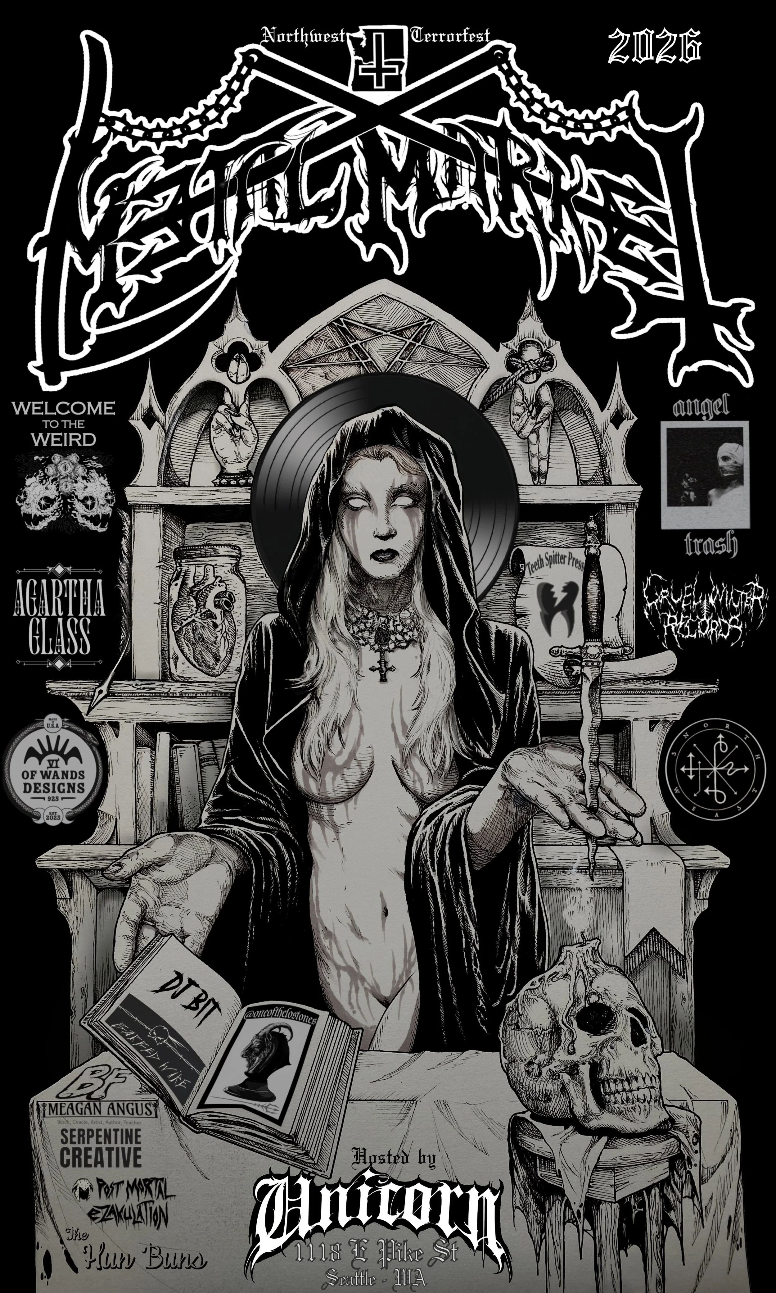 Whether you’re hunting for rare vinyl, handmade occult wares, or looking for a pre-pit tarot reading, this is your home base between sets. Join us at Narwhal (downstairs inside Unicorn) for three days of curated commercial carnage.