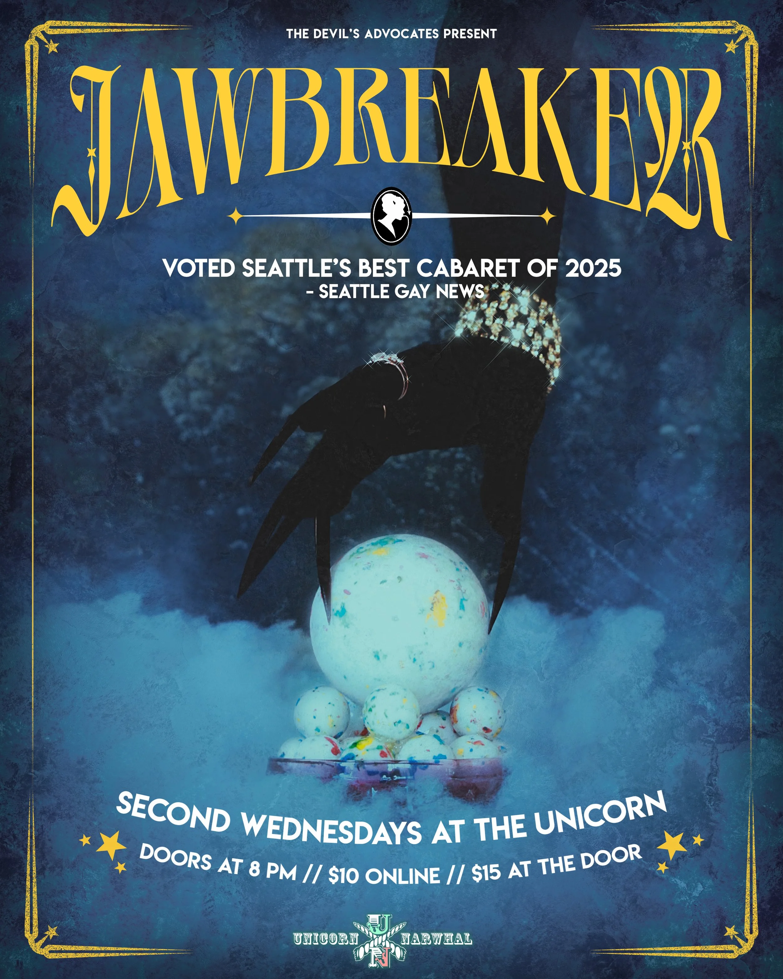 The Devils are back and sweeter than ever with Jawbreaker: A Sickeningly Sweet Cabaret! Pop over to the iconic Unicorn on Capitol Hill every Second Wednesday of the month for Burlesque, Drag, Live Music and more from some of Seattle’s tastiest morsels! Every month we will feature amazing special guests and devilish raffle prizes.